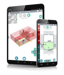 Die Basis : die bimCAD App zur effizienten Gebäudeerfassung als Grundlage im BIM-basierten Planungsprozess. In wenigen Schritten erstellt der Anwender auf seinem Tablet oder Smartphone raumweise den Gebäudegrundriss mit Bauteilen, Heizkörpern, Öffnungen wie Fenster oder Türen und weiteren Definitionen. Durch simples Aufziehen von Räumen in verschiedenen Größen und mit individuellen Maßeingaben entstehen selbst große Gebäude kinderleicht. Integrierte Assistenten für U-Werte, Raumtemperaturen, Anlagenbauteile etc. ermöglichen die weitere Verfeinerung der Datenaufnahme. Parallel zum 2D-Gebäudegrundriss können die Eingaben in einem einfachen 3D-Modell überprüft werden.