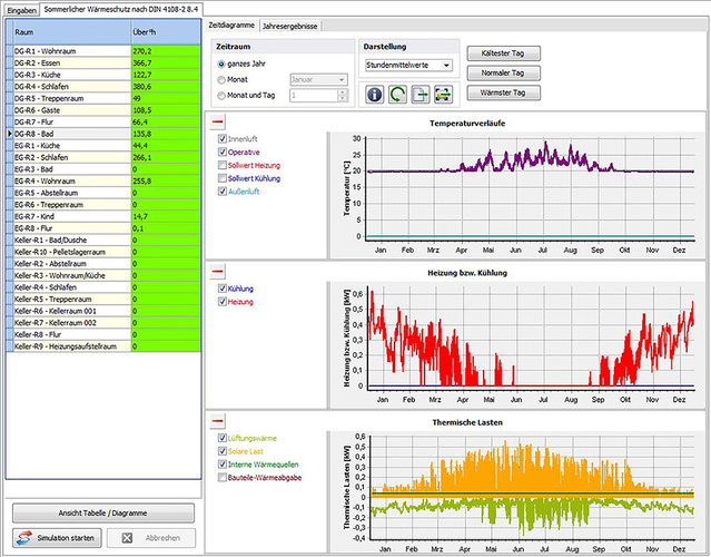 „ Sommerlicher Wärmeschutz 3D PLUS “ und „ Kühllast 3D PLUS “ stehen als Stand-Alone Anwendungen oder im Paket „ ETU-Simulation “ zur Verfügung. Mit diesem Software-Paket präsentiert Hottgenroth eine durchgängige Lösung von Simulationen in einer Software: Hier werden dynamische Faktoren des Gebäudebetriebs (Wetterbedingungen, Regelung, Raumnutzung, Bauteilspeicherung) sowie interne Gewinne beispielsweise Personen, Beleuchtung und Geräte berücksichtigt.