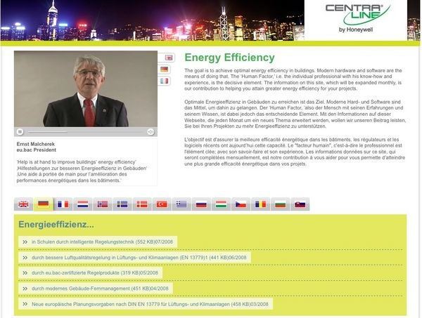 Unter www.centraline.com/energy tragen die Regelspezialisten des Unternehmens Informationen zum Thema Energieeffizienz zusammen. Denn moderne Hard- und Software sind zwar eine wichtige Voraussetzung - der Mensch mit seinen Erfahrungen und seinem Wissen ist jedoch das entscheidende Element. Durch das Bereitstellen von Wissen, der gesamten CentraLine-Erfahrung und zahlreicher „best-practise“-Beispiele will CentraLine dazu beitragen, dass immer mehr neue sowie existierende Gebäude noch energieeffizienter werden. Gebäudeenergieberater können sich hier über die Minimierung von Betriebskosten, die Reduzierung des Ressourcen-Verbrauchs und die Vermeidung von CO 2 -Emmissionen informieren. Jeden Monat erscheint auf der Website ein neuer Fachartikel zu einem weiteren entscheidenden Aspekt, der Gebäudeenergieberater in ganz Europa bei ihren Projekten unterstützen kann. Denn Wissen ist der erste Schritt in eine Zukunft voller energieeffizienter Gebäude.