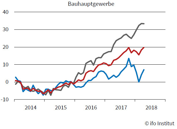 Gänzlich abgekoppelt von diesem Stimmungsumschwung zeigt sich allerdings das Bauhauptgewerbe. Hier ist der Geschäftsklimaindex auf ein neues Rekordhoch gestiegen.