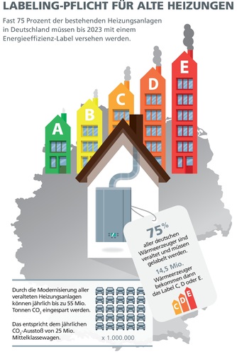 Ziel des weltweit ersten „nationalen Effizienzlabels für Heizungsaltanlagen“ für installierte Heizkessel ist es, die aktuelle Kesseltauschquote von jährlich 3,0 auf 3,7 % zu erhöhen. Das entspricht einem Plus von 120.000 Heizungsmodernisierungen pro Jahr.