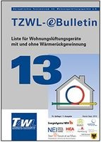 Das TZWL veröffentlicht seit dreizehn Jahren das vom Fachpersonal anerkannte eBulletin. Es listet die offiziellen Prüfergebnisse von mehr als 175 Wohnungslüftungsgeräten auf. Es beinhaltet Geräte mit DIBt-Prüfungen (Zulassung des DIBt steht noch aus), DIBt-Zulassungen und PHI-Zertifikaten. Somit ermöglicht das eBulletin einen Überblick über förderfähige und Passivhaus-geeignete Wohnungslüftungsgeräte. Es steht als Teil des Infoportals Wohnungslüftung weiterhin zum kostenlosen Download bereit ( Link zur Downloadseite ). GLR