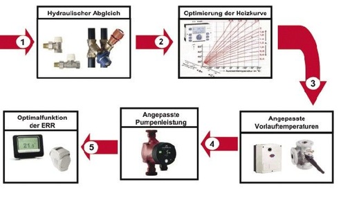 Bei der Optimierung der Wärmeverteilung an bestehenden Heizungsanlagen bezuschusst die KfW folgende Maßnahmen: