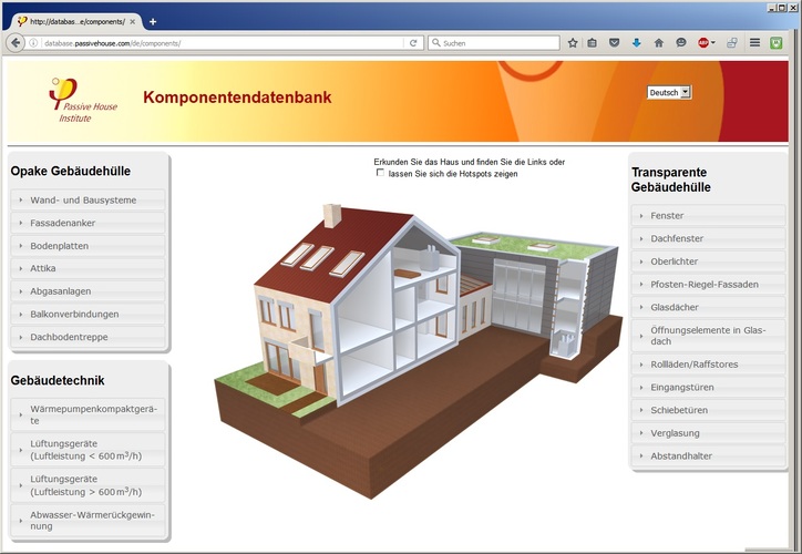 Mehr als 600 Produkte sind in der Online-Datenbank enthalten. Damit gibt es für praktisch jede architektonische Herausforderung die geeignete Lösung. Eine Hausgrafik ermöglicht zunächst die Auswahl der gewünschten Kategorie. Die jeweiligen Komponenten können anschließend nach verschiedenen Kriterien sortiert werden. In der Einzeldarstellung sorgen Schaubilder sowie zentrale Kennwerte für einen schnellen Überblick. Die vollständigen Angaben zu den energetischen Eigenschaften sind in den entsprechenden Passivhaus-Zertifikaten einsehbar. Links zu den Herstellern erleichtern einen direkten Kontakt. GLR