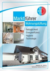 Der Marktführer Wohnungslüftung der entsprechenden Arbeitsgruppe im Fachverband Gebäude-Klima (FGK) bietet einen kompakten Überblick über Vorteile, Systeme, Geräte und Hersteller der kontrollierten Wohnungslüftung und führt die jeweiligen Kontaktadressen auf. Erstmalig wird darin auch das EU-Energieeffizienz-Label behandelt, das Wohnungslüftungsgeräte ab dem 1. Januar 2016 tragen müssen. Die Publikation kann kostenfrei bei der FGK-Geschäftsstelle über