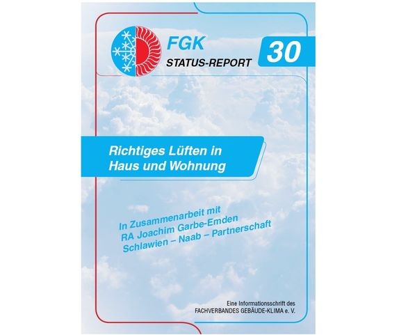 Bei Neubauten und sanierten Altbauten, die den Bestimmungen der EnEV entsprechen und somit eine dichte Bauweise aufweisen, findet nur ein unzureichender Luftwechsel zur Lüftung von Wohnungen statt. Welche technischen Maßnahmen dann geeignet sind, beschreibt der Status-Report 30 „Richtiges Lüften in Haus und Wohnung“, den der Fachverband Gebäude-Klima (FGK) herausgegeben hat. Zudem geht die neue Publikation auch auf rechtliche Aspekte aus Mieter- und auch aus Vermietersicht ein. Kostenlose Einzelexemplare von „Richtiges Lüften in Haus und Wohnung“ können beim Fachverband Gebäude-Klima über info@fgk.de angefordert werden. Außerdem ist die Publikation auf www.fgk.de in der der Rubrik „Status-Report“ als PDF-Download erhältlich ( Direktlink ). GLR
