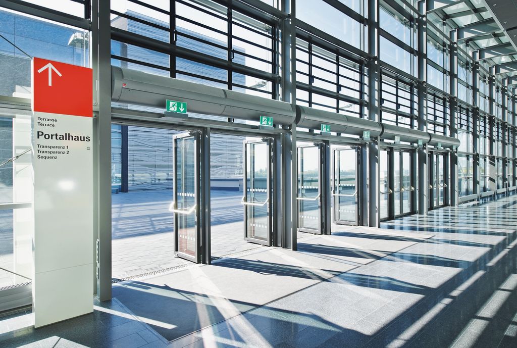 Typisches Beispiel sind die Luftschleieranlagen über den Ein- und Ausgängen von Messehalle und Portalhaus, die an den einladend geöffneten Durchgängen Temperaturgefälle ausgleichen, Zugluft vermeiden und Energieverluste reduzieren sollen. Gleichzeitig sollten die Anlagen aber möglichst weder zu spüren noch zu sehen sein – so die ideale Wunschvorstellung der Planer.