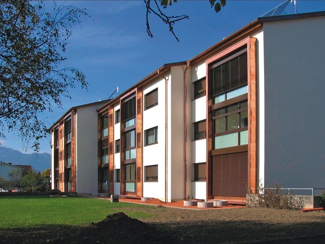 Bei der Vorarlberger Wohnungsbaugesellschaft VOGEWOSI weiß man natürlich ganz genau, welche energetischen Potenziale in unsanierten Wohnanlagen stecken. Immerhin bemüht sich die größte gemeinnützige Bauvereinigung in dem österreichischen Architektur-Eldorado bereits seit knapp dreißig Jahren, ihren Wohnungsbestand laufend energetisch zu verbessern und damit der ihr gebührenden Vorbildfunktion gerecht zu werden. Jüngstes Beispiel sind drei Wohnanlagen in den Gemeinden Rankwil und Altach, die als Pilotprojekt für die erste Faktor-10-Sanierung der VOGEWOSI ausgesucht worden waren. In den insgesamt fünf Gebäuden aus den Jahren 1968, 1977 und 1978 sind 42 Wohnungen untergebracht.