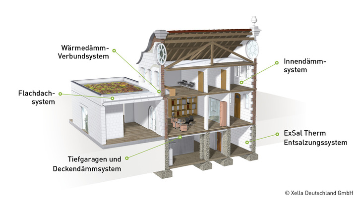 System zur Sanierung feuchter und salzbelasteter Wände, das zusätzlich die Wände dämmt. Eine vorherige Wandtrockenlegung ist nicht nötig. Sanierungen können schneller, einfacher und aufgrund eines deutlich längeren Renovierungszyklus wesentlich langlebiger durchgeführt werden.