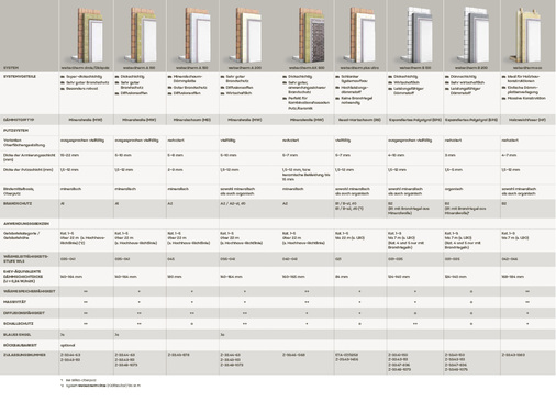 Eine Übersicht mehrerer WDV-Systeme des Herstellers Saint-Gobain Weber kann online über den Link bit.ly/GEB2038 abgerufen werden. Die Tabelle stellt verschiedene Aufbauten gegenüber und vergleicht sie hinsichtlich Oberflächenvielfalt, Brand-, Schall- und Wärmeschutz, Anwendungsgebieten, Massivität und Diffusionsfähigkeit.