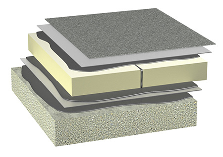 Die bauphysikalischen Eigenschaften der Dämmplatten aus modifiziertem PIR-Hartschaum bleiben auch unter extremen Bedingungen erhalten. Die hohe Temperaturstabilität von Polyurethan erlaubt die unbeschadete Verlegung in heißflüssigem Elastomerbitumen. Trotz Temperaturen bis zu 250 °C bleiben die Dämmplatten formstabil und druckfest. Das Material verhindert durch seine geschlossenzellige Schaumstruktur auch die Wasseraufnahme bei kurzzeitiger Beanspruchung. Sämtliche Aufbauschichten – Dampfsperre, Dämmung und die erste Abdichtungslage – werden vollflächig und vollfugig mit hochelastischem Wirobit Elastomerbitumen verklebt. Dabei ist jede einzelne Dämmplatte allseitig in Elastomerbitumen eingebettet und abgedichtet. Sollte bei diesem System einmal eine Leckage auftreten, ist diese auf einzelne Dämmplatten beschränkt. Die Stelle lässt sich punktgenau aufspüren, um dann die Dämmplatte gezielt auszutauschen und abzudichten.