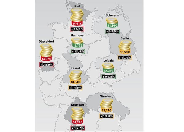 ), Stuttgart (14,37 Euro/m