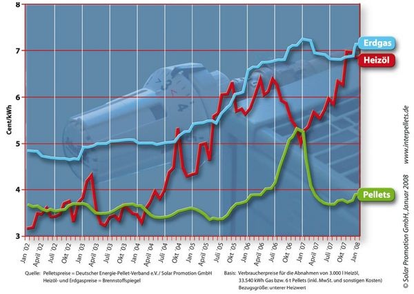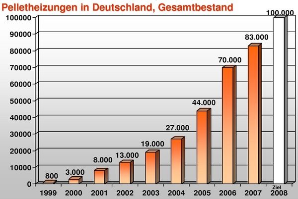 2007 wirkten diese Vorteile und Argumente allerdings nicht. Nur für kurze Zeit hohe Pelletpreise bei gleichzeitig sinkendem Heizölpreis, Vorzieheffekte durch die Mehrwertsteuererhöhung und die Diskussion um Feinstaub hatten den Markt regelrecht einbrechen lassen. 13.000 verkaufte Pellet-Heizkessel bedeuteten eine Halbierung des Absatzvolumens gegenüber 2006. Für das laufende Jahr geht man beim DEPV davon aus, dass 20.000 Pellet-Heizkessel verkauft werden. Damit würde man unter den Verkaufszahlen des Boomjahres 2006 bleiben. Allerdings hatte die Pelletbranche in den letzten Jahren mit der Frühjahresprognose stets weit neben dem tatsächlichen Jahresergebnis gelegen. Es ist also noch alles drin.