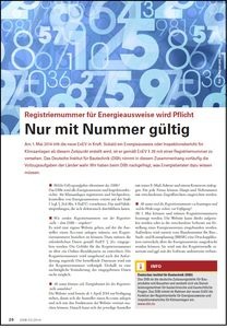 Ab 1. Mai 2014 können und müssen Registriernummern beantragt werden. Die Website kann direkt aufgerufen werden oder in die verschiedene Software zur Erstellung eines Energieausweises eingebunden werden. Außerdem wird zurzeit vom Bundesinstitut für Bau-, Stadt- und Raumplanung (BBSR) eine Druckapplikation entwickelt, über die Energieausweise...