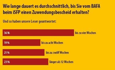 Unsere Frage: Wie hoch sind Ihre Außenstände derzeit, weil Sie nach Abgabe des Verwendungsnachweises für den iSFP noch kein Geld vom Bafa erhalten haben? Hier geht es zur Umfrage. pgl