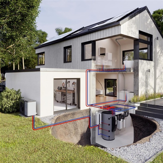 Arnd Pfeiffer braucht die Kühle des Erdreichs unter seinen Füßen, wenn er seine Runden dreht. Sonst können die Ski des Biathlon-Olympiasiegers nicht optimal über den Schnee gleiten. Zuhause ist das anders. Dort braucht er die Wärme des Erdreichs – mit ihr heizt er. Den Strom für die Sole/Wasser-Wärmepumpe liefert zum Teil eine Photovoltaikanlage. Anknipsen muss Pfeiffer den Solarstrom nicht. Die Wärmepumpenregelung kann aus den Daten der Vortage die voraussichtliche Leistungskurve der Photovoltaikanlage sowie den zu erwartenden Energiebedarf im Haus ermitteln und für den Heizbetrieb berücksichtigen. Auf diese Weise kann sie etwa vorgegebene Einschaltzeitpunkte auf Basis der Bedarfsprognose vorziehen, um ein Höchstmaß an Solarstrom mit der Wärmepumpe verwerten zu können. An heißen Sommertagen mit intensiver Sonneneinstrahlung lasse sich der Solarstrom für die reversibel arbeitenden Wärmepumpen nutzen, um das Wohnhaus zu kühlen. Wichtig: Die Wärmepumpe sollte ihre Leistung modulieren können.
