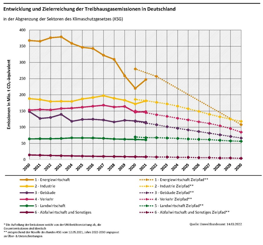 Der Anstieg der Treibhausgasemissionen um 4,5 Prozent im vergangenen Jahr ist insbesondere im Energiesektor zu verzeichnen. Das geht aus den aktuellen Berechnungen des Umweltbundesamtes (UBA) hervor. Als Grund nennt es die gestiegene Stromnachfrage, die wegen einer geringeren Stromerzeugung aus erneuerbaren Energien und des gestiegenen Gaspreises dazu geführt habe, dass verstärkt Kohlekraftwerke genutzt wurden. Der Gebäudesektor hat zwar 3,3 Prozent weniger Treibhausgase ausgestoßen, mit 115 Millionen Tonnen CO₂-Äquivalenten hat er aber die im Bundes-Klimaschutzgesetz festgeschriebene erlaubte Jahresemissionsmenge von 113 Millionen Tonnen CO₂-Äquivalenten überschritten. „Die Emissionsreduzierung ist im Wesentlichen als Sondereffekt auf deutlich verringerte Heizölkäufe zurückzuführen“, erklärt UBA-Präsident Dirk Messner. Die Heizöllager seien aufgrund der günstigen Preise und in Erwartung des Brennstoffemissionshandelsgesetzes bereits 2019 und 2020 umfangreich aufgestockt worden. Der Erdgasverbrauch sei dagegen witterungsbedingt angestiegen. Dem Anstieg der Treibhausgasemissionen will die Bundesregierung mit einem Klimaschutz-Sofortprogramm entgegenwirken. „ Wir müssen es schaffen, dreimal so viele Kapazitäten wie bisher zu installieren, um den Anteil der Erneuerbaren an der Stromerzeugung bis 2030 auf 80 Prozent zu steigern“, sagt Klima-Staatssekretär Patrick Graichen.