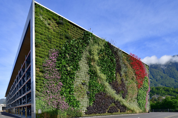 Die Living Wall der BLS Werkstätten wurde von Allmen Architekten , Interlaken, geplant, die Fassadenbegrünungsplanung und –ausführung erfolgte durch Vertiko, Freiburg und Skygardens, Fislisbach.
