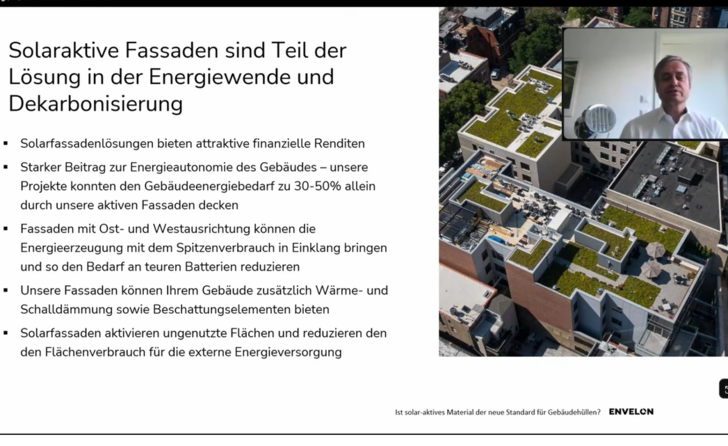 Das Unternehmen adressiert das Problem, dass bei mehrgeschossigen Gebäuden nicht ausreichend Dachfläche zur Verfügung steht, um das Gebäude mit Strom aus PV zu versorgen. Außerdem seien dort auch häufig TGA-Anlagen unterzubringen. Die Ausrichtung der Fassade nach Westen und Osten erlaube zudem eine höhere Eigenverbrauchsquote.