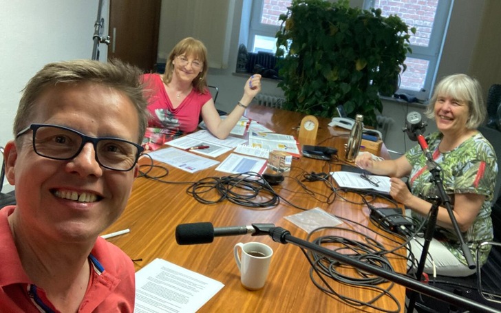 Zum Podcast Gebäudewende mit Host Pia Grund-Ludwig und den Gästen Claudia Siegele und Daniel Mund: