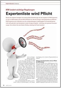 Mit dem Rundschreiben der KfW am 23. Dezember 2013 wurden die Anforderungen an die Antragsberechtigung sowie technische Programmdetails neu definiert. Wer weiter Anträge für die KfW-Programme Energieeffizient Bauen und Sanieren stellen will, muss spätestens zum 1. Juni 2014 in der Energieeffizienz-Expertenliste gelistet sein.