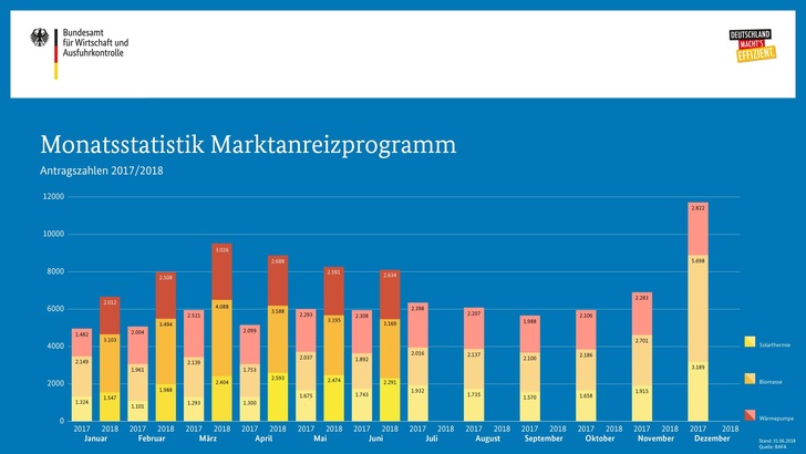 In den monatlich vom BAFA veröffentlichten Zahlen sind neben den Vorab-Anträgen nach dem neuen Online-Verfahren auch Anträge für im Jahr 2017 installierte Anlagen enthalten, da für sie noch bis September eine Übergangsfrist gilt. Bisher unterscheidet das BAFA nicht nach Neu- und Altfällen. Die monatliche Erhebung des Bundesverbands der Deutschen Heizungsindustrie (BDH) zu den realen Heizungsverkäufen verzeichnet im Pelletbereich bis Mai 2018 gegenüber dem Vorjahr sogar einen zweistelligen Rückgang. Bentele: „Die im DEPV organisierten Hersteller arbeiten natürlich mit Hochdruck daran, dass aus den Vorab-Anträgen schnell eingebaute Kessel und Öfen werden. Verunsicherung beim Kunden, wann genau er den Auftrag erteilen darf, um die mehrere Tausend Euro betragende MAP-Förderung zu bekommen, sowie die hohe Auslastung im SHK-Handwerk bremsen die Wärmewende momentan leider stark.“ Laut BAFA darf der Heizungs-/Ofenbauer sofort nach Erhalt der Eingangsbestätigung beauftragt werden. Eine Zustellung des Förderbescheids müsse nicht abgewartet warten.