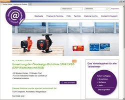 Das Webinar „Umsetzung der Ökodesign Richtlinie 2009/15/EG (ErP-Richtlinie) mit KSB“ wurde speziell für TGA-Planer, Energieberater und Anlagenbauer konzipiert. Für die kostenlose Teilnahme melden Sie sich unter www.gentner.de/webinare an. Sie erhalten dann Zugangsdaten und können sich damit zum Seminartermin einloggen. GLR