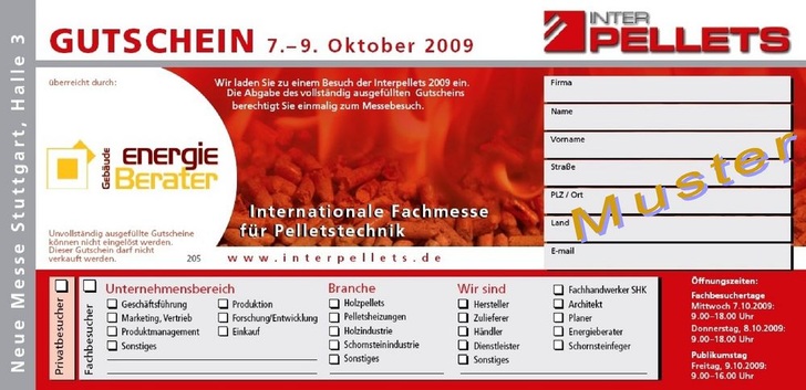 Mit dem Gutschein im der GEB-Ausgabe 09-2009 haben Sie an einem Tag freien Eintritt zum Ausstellungsbereich der Interpellets.