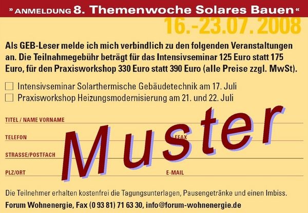 Das Intensivseminar Solarthermische Gebäudetechnik am 17. Juli fokussiert Planungs- und Ausführungsbeispiele auf der Grundlage einer optimalen solarthermischen Nutzung und integralen Planung im Zusammenhang mit der Gebäudekonstruktion. Zielsetzung ist die Steigerung der solaren Deckungsrate zur Trinkwasserbereitung und zur Deckung des Heizwärmebedarfs. Dabei werden bislang ungenutzte Wärmepotenziale miteinbezogen. Zudem gibt es Informationen über die aktuellen Förderrichtlinien für Solarthermie, Biomasse und Wärmepumpen. Am 21. und 22. Juli beschäftigt sich der Praxisworkshop Heizungsmodernisierung der DEN-Akademie mit solarthermischen Anwendungen sowie der umfassenden Bestandsaufnahme vor Ort und der Bewertung bestehender Anlagentechnik.