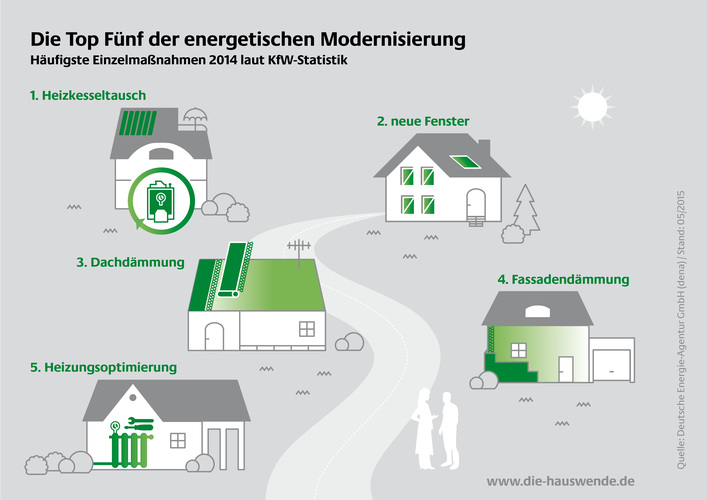 Schritt für Schritt statt alles auf einmal: Um die eigenen vier Wände energetisch zu modernisieren, nimmt die Mehrzahl der Hausbesitzer in Deutschland nicht gleich eine Komplettsanierung in Angriff, sondern setzt auf Einzelmaßnahmen.