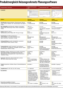 Rund 20 Programme für die Heizungsrohrnetz-Planung und -Berechnung von Software-, teilweise auch von SHK-Produktanbietern stehen zur Auswahl. In der Konzeption, im Funktionsumfang und den Möglichkeiten unterscheiden sie sich teilweise deutlich. Alle Programme unterstützen sowohl die Neuplanung von Heizungsrohrnetzen als auch die Überprüfung bestehender Netze sowie den hydraulischen Abgleich („Kleiner Aufwand, große Wirkung – Software für den hydraulischen Abgleich“, GEB 04-2018, Webcode 813920 ).