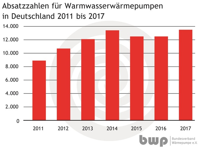 Auch der Absatz von Trinkwasser-Wärmepumpen ist in 2017 im Vergleich zum Vorjahr um 8 % gewachsen, es wurden 13.500 Geräte verkauft. Insgesamt wurden 2017 hierzulande somit 91.500 Wärmepumpen in Betrieb genommen.