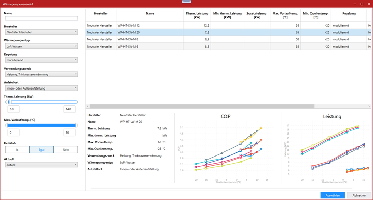 Im Mittelpunkt steht die Auslegung nach VDI 4645 auf Basis einer Heizlastberechnung. Sie können Heizlastwerte nach DIN/TS 12831-1 direkt aus anderen Modulen übernehmen oder frei eingeben. Damit lassen sich sowohl Neu- als auch Bestandsgebäude verlässlich bewerten. Der integrierte Produktkatalog unterstützt Sie bei der Auswahl passender Wärmepumpen und ermöglicht einen direkten Variantenvergleich. Die Ergebnisse sind klar dokumentiert, nachvollziehbar aufbereitet und schaffen Vertrauen bei Ihren Kunden. Sie präsentieren damit nicht nur eine technische Berechnung, sondern eine praxisorientierte Entscheidungsgrundlage, die Planungssicherheit schafft und Rückfragen minimiert.