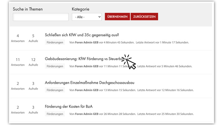 Sie können die Fragen und Antworten im Forum durchsuchen. Geben Sie dazu im Suchfeld oberhalb der Frageliste ein Suchwort ein und klicken Sie auf "Übernehmen". Mit "Zurücksetzen" können Sie die Suche zurücksetzen.