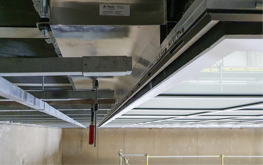 Für eine ästhetische Deckengestaltung lassen sich die Schlitzdurchlässe in Fugen integrieren. Im Pergamonmuseum sind sie unauffällig für Besucherinnen und Besucher zwischen Lichtdecke und umlaufendem Randfries platziert und erfüllen die architektonischen Anforderungen. Die Trennung der Installationsebene für die Raumlufttechnik von der Lichtdecke erforderte geometrische Sonderausführungen der Luftverteilkästen, um die speziellen Anschlüsse platzsparend unterbringen zu können.