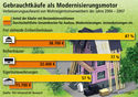 Insgesamt hat sich der Anteil der aufwendigeren Maßnahmen (mit einem Volumen von über 50.000 Euro) innerhalb nur weniger Jahre von 8 auf 18 % mehr als verdoppelt. Und 22 % aller Gebrauchtkäufer planen nach der Befragung allein in den nächsten zwei bis drei Jahren, energiesparende Maßnahmen durchzuführen. Auch dies zeigt die hohe Bedeutung von Transaktionen in den Wohnungsbeständen für die Modernisierung und energetische Sanierung. GLR