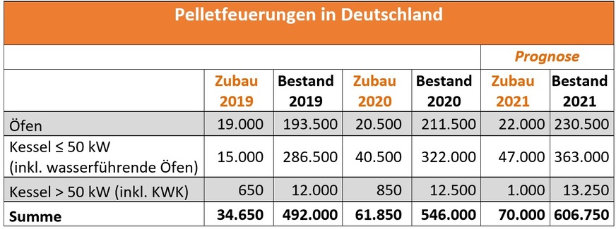 61.850 Pelletsfeuerungen wurden im vergangenen Jahr laut dem Deutschen Energieholz- und Pellet-Verband (DEPV) neu installiert. Im Einzelnen handelte es sich um 20.500 Pelletskaminöfen, 40.500 Pelletskessel und wasserführende Pelletskaminöfen mit einer Leistung bis 50 Kilowatt. Hinzu kamen 850 Anlagen größer 50 Kilowatt. „Niedrige Verkaufszahlen in den Vorjahren, neue attraktive Förderbedingungen sowie das zunehmende Interesse der Verbraucher“, gibt DEPV-Geschäftsführer Martin Bentele als Gründe für den hohen Pelletskesselabsatz 2020 an. Von einem Boom zu sprechen, hält er jedoch für fahrlässig: „Schließlich warten wir schon seit Jahren darauf, dass endlich Bewegung in den Wärmemarkt kommt.” So seien die angekündigten und mit der CO2-Abgabe bereits vollzogenen Erschwernisse für das Heizen mit fossilen Brennstoffen aber auch das zunehmende Interesse in Pandemiezeiten, ins Eigenheim zu investieren weitere, Gründe für die Marktbelebung.