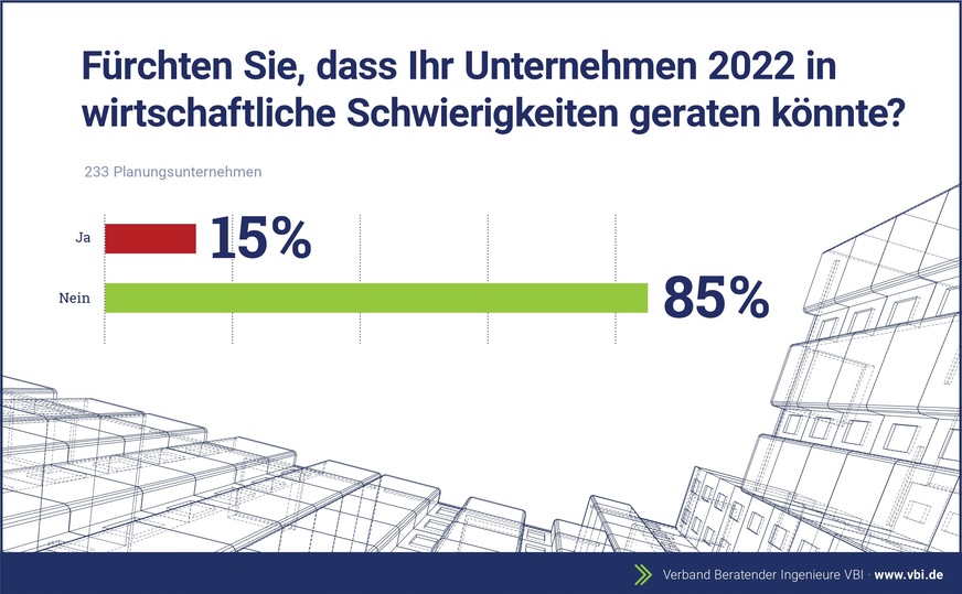Baukostensteigerungen, Bauzeitverlängerungen und stornierte Aufträge gefährden inzwischen auch die wirtschaftliche Lage der Bauplanungsbüros. Das zeigt die aktuelle Blitzumfrage des Verbands Beratender Ingenieure VBI: