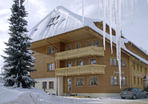 Bauherr: Familie Goos, Gasthof Schwarzwaldhaus in 79872 Bernau, http://www.schwarzwaldhaus-bernau.de Gebäudenutzfläche: 1370 m 2 (inkl. 450 m 2 Anbaufläche)Endenergiebedarf Q E : 398 129 kWh/aJahres-Heizwärmebedarf: 230 345 kWh/aPrimärenergiebedarf Q P : 82 kWh/m 2 a