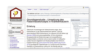 Krankenhäuser zählen zu den größten Energiefressern unter den Gebäuden. Die Zeit für Energieeffizienz-Maßnahmen in diesem Bereich ist günstig, denn viele der etwa 2000 Krankenhäuser in Deutschland sind ohnehin sanierungsbedürftig. Mit verfügbarer Technik kann der Energiebedarf in den meisten Bereichen maßgeblich reduziert werden. Angesichts der Komplexität der Energieströme ist aber eine frühzeitige Abstimmung und Beteiligung aller Akteure wichtig. Im Frankfurter Stadtteil Höchst wird ein altes Klinik-Gebäude durch einen Neubau ersetzt. Hier soll das erste Passivhaus-Krankenhaus entstehen. Wichtige Fragen zur Umsetzung des Projekts wurden im Auftrag des Landes Hessen in einer Grundlagenstudie erarbeitet. Eine Zusammenstellung der zentralen Ergebnisse dieser Studie ist online auf Passipedia verfügbar.