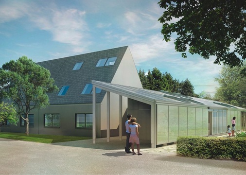Solarkollektoren auf dem Dach des Anbaus sind wesentliche Elemente für die energetische Versorgung, die ausschließlich mit erneuerbaren Energien gedeckt wird. Dies ist umso bemerkenswerter, da nicht auf ein Wärmerückgewinnungssystem oder eine mechanische Lüftungsanlage zurückgegriffen wird. Deren nachträgliche Installation wäre zu aufwendig gewesen. Den notwendigen Mindestluftwechsel gewährleisten automatisch gesteuerte Dachfenster. Eine Luft-Wasser-Wärmepumpe und die solarthermische Anlage bilden zusammen eine innovative Komplettlösung. Die Luft-Wasser-Wärmepumpe deckt den größten Anteil des Bedarfs an Heizwärme und Warmwasser. Das Besondere an diesem System: die Solarkollektoren liefern als integrierter Bestandteil der Wärmepumpe das ganze Jahr Wärme – nicht nur für die Warmwasserbereitung, sondern auch für die Gebäudeheizung. Die benötigte Restenergie für Haushaltstrom, den Kompressor der Wärmepumpe und den Strom für Hilfsenergie beträgt nur noch ca. ein Drittel des gesamten Bedarfs. Die Eröffnung des deutschen ModelHome fand am 19. November 2010 statt.