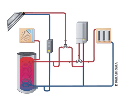 Die Frage nach der Effizienz ist unser größtes Anliegen, wenn wir Kunden zu sinnvollen Energiesparmaßnahmen beraten. Dies gilt besonders für Solarthermie-Anlagen, die in Alt- oder Neubauten integriert werden sollen. Ungeachtet der recht üppigen Solarförderung seit Januar 2008 ist nicht jede Solaranlage gleich wirtschaftlich, schon gar nicht die klassische Brauchwasseranlage. Anders stellt sich die Situation bei solarer Heizungsunterstützung dar: Hier erzielten wir in den Energiegutachten bereits Amortisationszeiten von sechs Jahren! Der vermeintliche „Trick“ liegt in der cleveren Einbindung des solaren Wärmeertrags in die Heizungsanlage. Dazu leistet das Aqua-Solarwärme-System von Paradigma einen nennenswerten Beitrag: Denn mit diesem System ist es für den Eigenheimbesitzer leichter denn je, eine bestehende Heizung mit einer Solaranlage zu erweitern. Meistens ist es nicht einmal notwendig, den vorhandenen Warmwasserspeicher auszutauschen. Darüber hinaus fließt hier – anders als bei den Glykol-Kollektoren – normales Heizungswasser vom Solarkollektor zum Warmwasserspeicher. Dies macht die Einbindung des Systems wesentlich unkomplizierter, und in manchen Fällen sogar erst möglich. Das Heizungswasser, das vom Kollektor kommt, erwärmt anschließend das Trinkwasser über denselben Wärmetauscher, den auch der Heizkessel nutzt. Zudem ist das Aqua-Solarwärme-System wartungsfreundlicher als Systeme mit Frostschutz-Wasser-Gemisch, bei denen das Medium ja regelmäßig ausgetauscht werden muss. Weiterhin machten wir die Erfahrung, dass der mit Heizwasser befüllte Kollektor bei trübem Wetter im Winter immer noch Temperaturen von über 30°C bringt. Damit kann zum Beispiel eine Fußbodenheizung schon recht gut bedient werden. In der sogenannten „starken Zeit der Solaranlage“ (März bis Juni und September bis Oktober) kann so eine heizungsunterstützende Anlage 20 bis 70% der Heizarbeit übernehmen und dafür sorgen, dass der Öl- oder Gaskessel wesentlich früher ausbleibt.