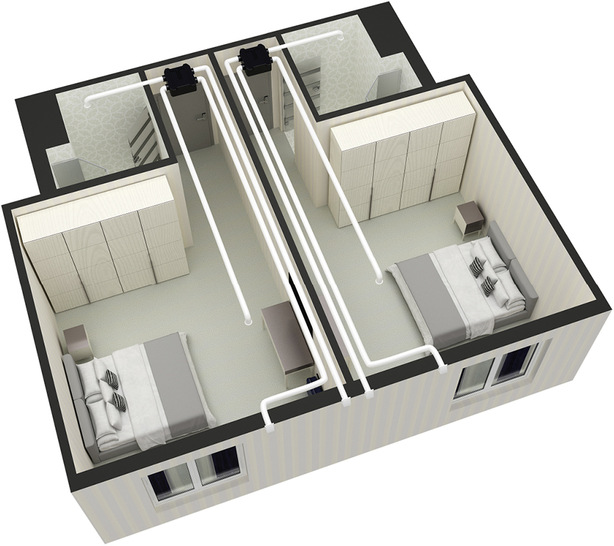 Von Blauberg Ventilatoren ist mit Reneo-Fit D 100 S14 jetzt ein kompaktes und 8 kg leichtes Gerät zur zentralen Lüftung erhältlich. Die Kompaktlüftungsanlage kann bis zu 130 m³ Luft pro Stunde austauschen. Je nach Ausführung ist sie mit einem Enthalpie- oder Polystyrol-Gegenstromwärmetauscher ausgestattet. Sie kann bis zu 94 % der Wärme zurückgewinnen. Das Kompaktlüftungsgerät besteht aus leichtem EPP-Material, sodass es sich beispielsweise leicht an abgehängten Decken montieren lässt. Es misst 630 mm in der Länge, 600 mm in der Breite und 242 mm in der Höhe und kann links- oder rechtsseitig angebracht werden. Wenn es arbeitet, erzeugt es in einem Abstand von drei Metern einen Schalldruckpegel von maximal 32 dB(A), was etwa einem Flüstergeräusch entspricht. Dies ist laut Blauberg neben der schalldämmenden Eigenschaft des Gehäuses auch dem Einsatz von EC-Motoren mit Außenläufer und Radiallaufrädern zu verdanken sowie den mit einem externen Rotor und vorwärts gekrümmten Laufradschaufeln ausgestatteten Ventilatoren. jb