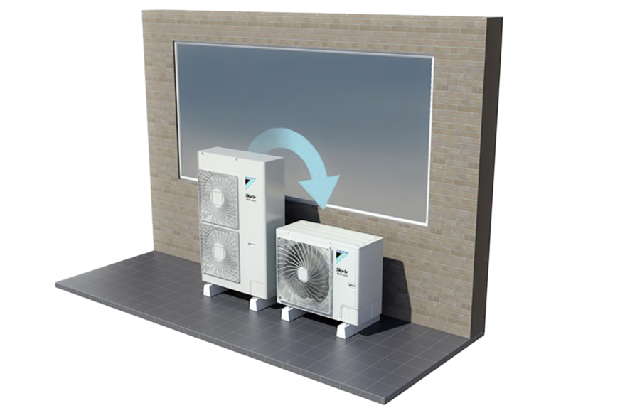 Mit zwei kompakten Geräteserien für kleinere gewerbliche Anwendungen reagiert Daikin auf die Anforderungen von Installationen in eng bebauten Gebieten. Vor allem Gebäude in Innenstadtlage sind häufig schwer zugänglich. Strenge Bauvorschriften, denkmalgeschützte Fassaden oder mit Technik bereits zugestellte Dächer können die Außenaufstellung von Klimasystemen unmöglich machen und erfordern daher eine unauffällige Gebäudetechnik. Die neuen Geräte der Serie Daikin Sky Air eignen sich z. B. für Technikraumanwendungen und kleinere Gewerberäume wie Restaurants, Bäckereien, Tankstellen oder Boutiquen und Shops. Sie sind deutlich kleiner als ihr jeweiliges Vorgängermodell. Die Außenmaße der RZA-D der Advanced Serie, die das bisherige R-410A Außengerät RZQ-C ersetzt, sind um fast 50 % verringert. Statt bisher nach oben ausblasend ist das neue Gerät mit frontausblasenden Ventilatoren ausgestattet, die eine größere Flexibilität bei der Wahl des Aufstellungsortes ermöglichen. Die Sky Air RZAG-N der Alpha Serie mit nur einem Lüftermotor und entsprechend kompakteren Maßen wird die bisherige Sky Air RZAG-M ersetzen. Letztere hatte noch zwei Lüftermotoren. Mit Abmessungen von 870 × 1100 × 460 mm und einem Gewicht von 70 bis 92 kg (RZAG-N) bzw. 117 kg (RZA-D) (je nach Leistungsgröße) sind die Außengeräte leichter zu transportieren. Eine Klapptüre erleichtert den Zugriff auf weiter hinten gelegene technische Komponenten. Die beiden neuen Sky Air Serien sind mit allen gängigen Sky Air Innengeräten kombinierbar.