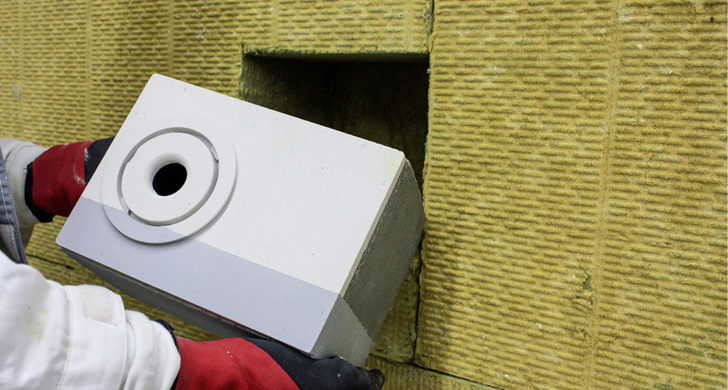 Die Nisthilfen werden passend zum jeweiligen Dämmstoff und zur gewählten Dicke des Systems angefertigt und lassen sich oberflächenbündig einbauen. Der jeweilige Nistkasten wird mit Klebe- und Armierungsmörtel versehen und in eine auf Maß zugeschnittene Öffnung in der Dämmung eingesetzt. Anschließend werden das Element und die umliegenden Dämmplatten mit einem Armierungsgewebe mit einer entsprechenden Aussparung überdeckt und verputzt. Zu sehen ist am Ende lediglich das Flugloch. ab