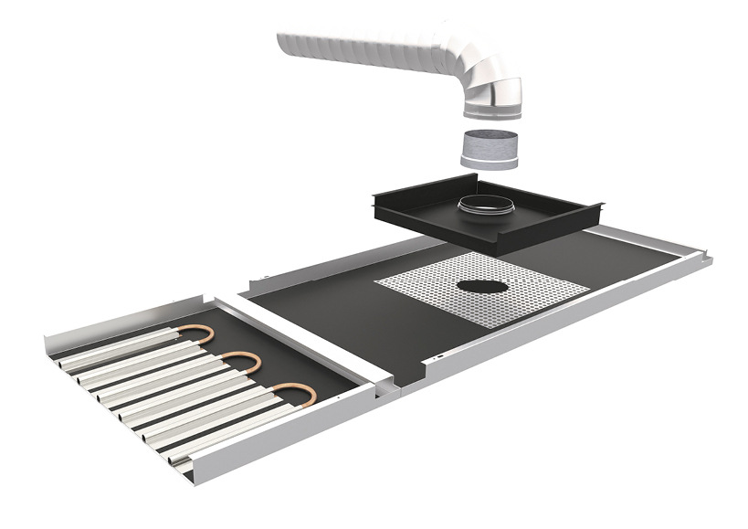 Der Luftauslass Breeze lässt sich unsichtbar in Heiz- und Kühldecken von Zehnder integrieren. Er unterstützt deren Heiz- und/oder Kühlleistung mit einem hygienischen Luftwechsel. Er eignet sich für Systeme in Büros, Gaststätten, öffentlichen Gebäuden und Hotels. Zehnder bietet den Luftauslass in verschiedenen Modellvarianten für geschlossene Metalldecken in den gängigsten Systemen an. Bei Breeze wird der Luftstrom entlang der Decke eingeblasen, passt sich dabei der Raumtemperatur an und sorgt auf diese Weise für ein komfortables und zugluftfreies Raumklima – ohne zusätzliche Geräuschbelastung. Eine nachträgliche Montage in passive Deckenbereiche ist möglich. Je nach benötigtem Luftvolumenstrom zwischen 20 und 300 m³/h ist der Luftauslass in verschiedenen Modellvarianten erhältlich. In perforierten Metalldecken von Zehnder ist die Zuluftlösung nicht zu sehen. jb