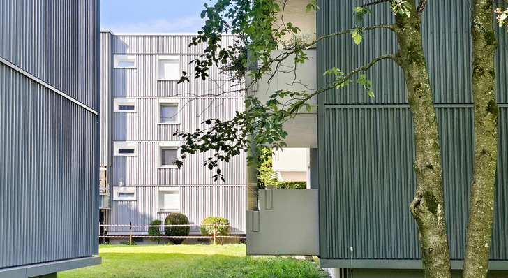 Es war die Zeit, in der man sich nicht immer darüber im Klaren war, dass es nicht nur darauf ankommt, was man aus Beton macht, sondern auch auf das „Wie“. Bereits wenige Jahre nach dem Bezug der Wohnungen mussten die Fassaden aufgrund bauphysikalischer Probleme außenseitig mit 40 Millimeter Mineralwolle gedämmt werden. Die Optik des Sichtbeton übernahm fortan eine hinterlüftete Fassadenbekleidung aus asbesthaltigen Faserzementplatten, um Dämmplatten und Beton vor Witterungseinflüssen zu schützen.