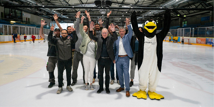 Im Zentrum der neuen Energieversorgung stehen die Kältemaschinen, die die Eisflächen kühlen und dabei Abwärme erzeugen. Diese Wärme ging bisher ungenutzt an die Außenluft verloren und wird nun über ein System aus drei Wärmenetzen verwertet. Das niedrigst temperierte Netz mit rund 28 Grad Celsius versorgt Anlagen wie die Lüftung oder die Schmelzgruben. ...