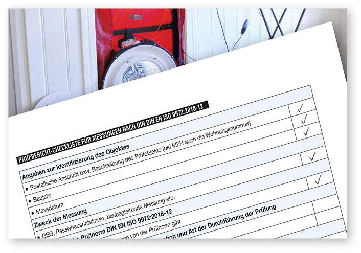 Wann immer die Dichtheit eines Gebäudes offiziell mit einem Luftdichtheitstest ermittelt werden soll, gehört ein normgerechter Prüfbericht dazu. Wie er laut dem Gebäudeenergiegesetz auszusehen hat, beschreibt die vom Fachverband Luftdichtheit im Bauwesen (FLiB) herausgegebene Broschüre „Anforderungen an den Prüfbericht nach DIN EN ISO 9972“. Sie unterstützt Messteams beim Dokumentieren ihrer Arbeit und informiert Verantwortliche in Bauämtern, Planungs- und Energieberatungsbüros sowie bei Förderbanken darüber, welche Angaben sie erwarten dürfen. Die Broschüre listet die von der neuen Prüfnorm samt nationalem Anhang geforderten sowie vom FLiB empfohlenen Inhalte für einen Prüfbericht auf. Ein kommentiertes Muster zeigt, wie eine vollständige Dokumentation aussehen kann, und liefert Beispiele unter anderem für bewertungsfreie Beschreibungen von Leckagen. Mit einer Checkliste für die Gebäude-Präparation nach Verfahren 3 der DIN EN ISO 9972 können Messteams ihre Auftraggeber über notwendige Abdichtungsmaßnahmen informieren sowie die Normentreue des eigenen Vorgehens absichern. Eine weitere Checkliste hilft bei der Kontrolle, ob ein Prüfbericht vollständig ausgefüllt wurde. Die Informationsschrift kostet 9,79 €. jb