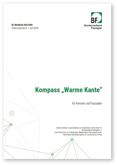Die energetische Qualität von Fenstern und Fassaden hängt unter anderem vom Übergang zwischen Glas und Rahmen ab. Um die entsprechenden UW- und UCW-Werte berechnen zu können, bewährt es sich seit Jahren, auf den BF Kompass „Warme Kante“ mit repräsentativen Psi-Werten zurückzugreifen. Jetzt hat der Arbeitskreises Warme Kante im Bundesverband Flachglas (BF) die Datenblätter turnusmäßig überprüft und ihre Gültigkeit bis zum 30. Juni 2027 verlängert. Die repräsentativen Psi-Werte (Ψ) beschreiben den Wärmeverlust entlang des Glasrandverbunds. Sie sind entscheidend für die energetische Bewertung und den Vergleich verschiedener Fenstersysteme. Die Werte in den BF-Datenblättern basieren auf realen Messungen und ermöglichen eine normgerechte Berechnung nach EN 10077-2. Die Hersteller von Abstandhaltern im BF-Arbeitskreis Warme Kante haben sich 2017 freiwillig verpflichtet, ihre Systeme alle zwei Jahre nachprüfen zu lassen. Die Berechnungsverfahren und die messtechnischen Grundlagen stützen sich dabei auf etablierte Richtlinien des Instituts für Fenstertechnik in Rosenheim. jb